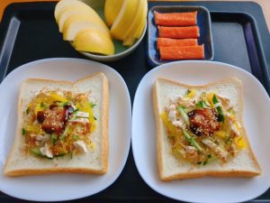 未分類朝食 たくあんサラダチキンきゅうり梅干しサンド 2025年11月5日 | by ミドリ朝食 たくあんサラダチキンきゅうり梅干しサンド。食パンに、細切りにしたたくあん・きゅうり、ほぐしたサラダチキンをのせて、梅干し・かつお節・白ごま・醤油をかけた。クラシルのレシピを参考にして作ったが、醤油はとろみ剤を使って、あとがけした