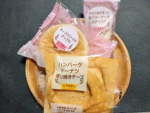セイコーマートのハンバーグドーナツ照り焼きチーズ、チーズクリームアップル。