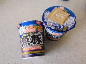 以前に買い置きをしておいた、カップヌードルの魚豚ヌードル。