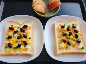 朝食朝食 黒豆じゃがいもミックスベジタブルサンド 2026年1月7日2026年1月7日 | by ミドリ朝食 黒豆じゃがいもミックスベジタブルサンド。食パンに、マヨネーズを塗り、黒豆・じゃがいも・ミックスベジタブルをのせた。黒豆が残っていたので、パンに彩りよくのせた