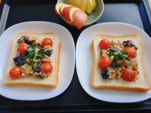 朝食朝食 茄子トマトツナマヨ炒めサンド 2026年1月19日 | by ミドリ朝食 茄子トマトツナマヨ炒めサンド。食パンに、揚げ茄子・トマト・ツナをマヨネーズで炒めたものをのせて、パセリ・粉チーズをかけた。キユーピーのサイトに載っていたものを参考に作ったが、ツナがアクセントになっているようで、とても美味しかった。