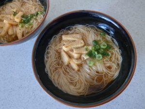 昼食, めん類昼食 にゅうめん 2026-01-30 2026年1月30日2026年1月30日 | by ミドリ昼食 にゅうめん。夫の帰宅を待って、お昼はにゅうめん。1時半くらいなので2人で2束。味付き油揚げ、青ねぎをトッピングした