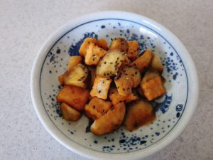 厚揚げさつまいもの甘辛炒め(残り物)。
