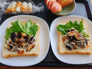 朝食 揚げ茄子マヨスイートチリソースサンド