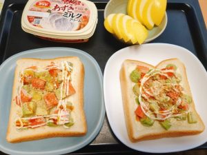 朝食朝食 アボカドカニカママヨヤミ―サンド 2026年3月5日 | by ミドリ朝食 アボカドカニカママヨヤミ―サンド。食パンに、アボカド・カニカマをのせて、マヨネーズとヤミ― コリアンホットをかけた。ヤミ―のサイトに載っていたものを参考にして作った