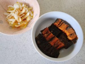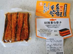 既製品, 昼食昼食 紅鮭重ね巻き 2026年3月12日 | by ミドリ昼食 紅鮭重ね巻き。紅鮭重ね巻きは、巻いていない昆布巻きのようなもの。塩分控えめなので食べやすく、2人で半分食べてしまった 生協に注文をしたものかと思ったが、イオンで800円くらいで買ったものだった。白菜とちくわのお浸し。ご飯のお供は、さつまいも甘煮、ねり梅。